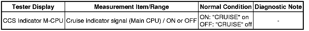 (e) Check the Data List for proper functioning of the CRUISE main indicator light.