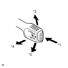 (b) Check the cruise control main switch using the Data List function in the Techstream (ON-OFF, CANCEL, -SET and + RES).