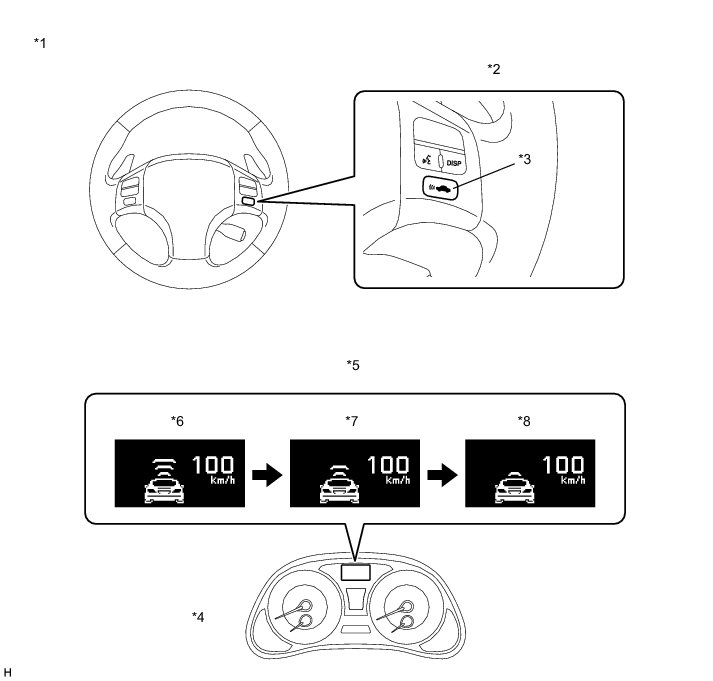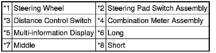 (d) Check that the indication of the vehicle-to-vehicle distance, which is shown on the multi-information display on the combination meter assembly, changes from long to middle to short in that order.