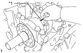 (b) Using a dial indicator, measure the thrust clearance while prying the crankshaft back and forth with a screwdriver.