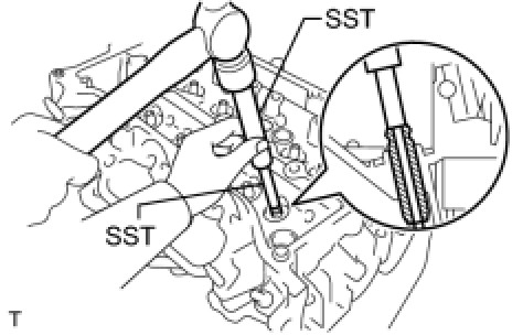 (c) Using SST and a hammer, tap out the exhaust valve guide bushes.