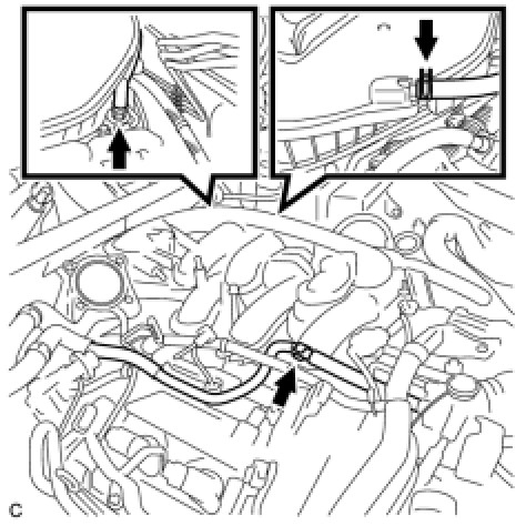(i) Connect the 2 fuel vapor feed hoses and connector.