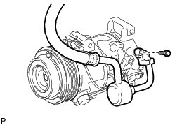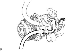 (d) Install the discharge hose sub-assembly onto the compressor and magnetic clutch with the bolt.