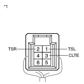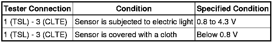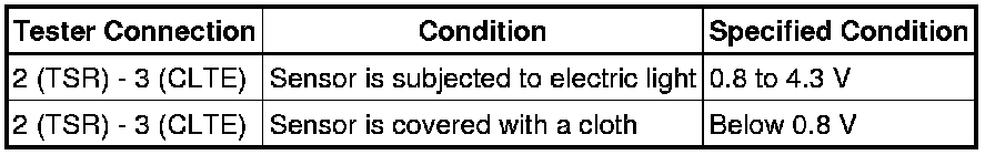 * The connection procedure for using a digital tester such as a TOYOTA electrical tester is shown above. When using an analog tester, connect the negative (-) lead to terminal 1*1, 2*2 and positive (+) lead to terminal 6 of the solar sensor.