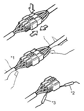 (2) When disconnecting a connector, do not pull on the harnesses. Grasp the connector directly and separate it.