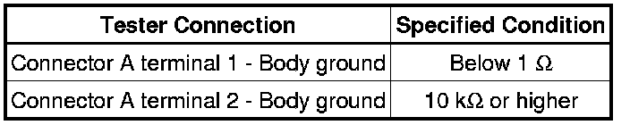 * If the results match the values specified above, an open circuit exists between terminal 1 of connector A and terminal 1 of connector C.