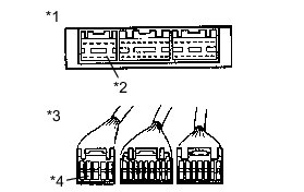 (3) Checking the contact pressure of the terminal: Prepare a spare male terminal. Insert it into a female terminal, and check for ample tension when inserting and after full engagement.