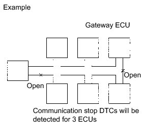 (3) For BEAN, if DTC of ECU communication stop is output, connectors may be disconnected, or communication buses may be open at 2 points. It will not become abnormal with only 1 communication bus open.