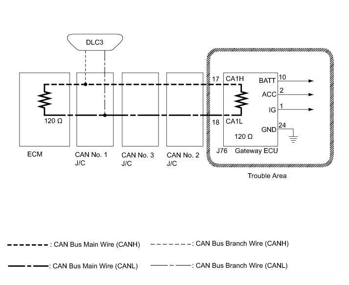 * Turn the engine switch off before inspecting CAN bus wires for a ground short.