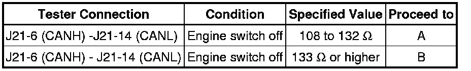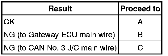 When the measured value is 133 Ohms or more and a CAN communication system DTC is output, there may be a fault besides disconnection of the DLC3 branch wire. For that reason, troubleshooting should be performed again from How to Proceed with Troubleshooting after repairing the trouble area How to Proceed With Troubleshooting.