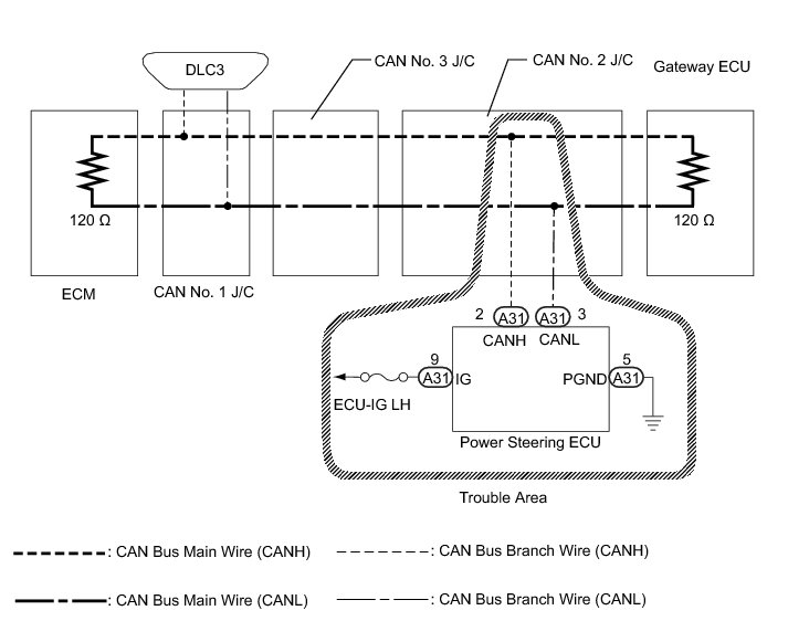 NG -- REPAIR OR REPLACE POWER STEERING ECU BRANCH WIRE OR CONNECTOR (CANH, CANL)