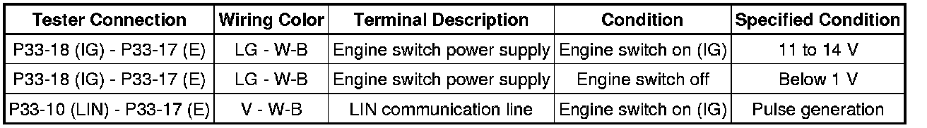 (d) Measure the voltage and check for pulses according to the value(s) in the table below.