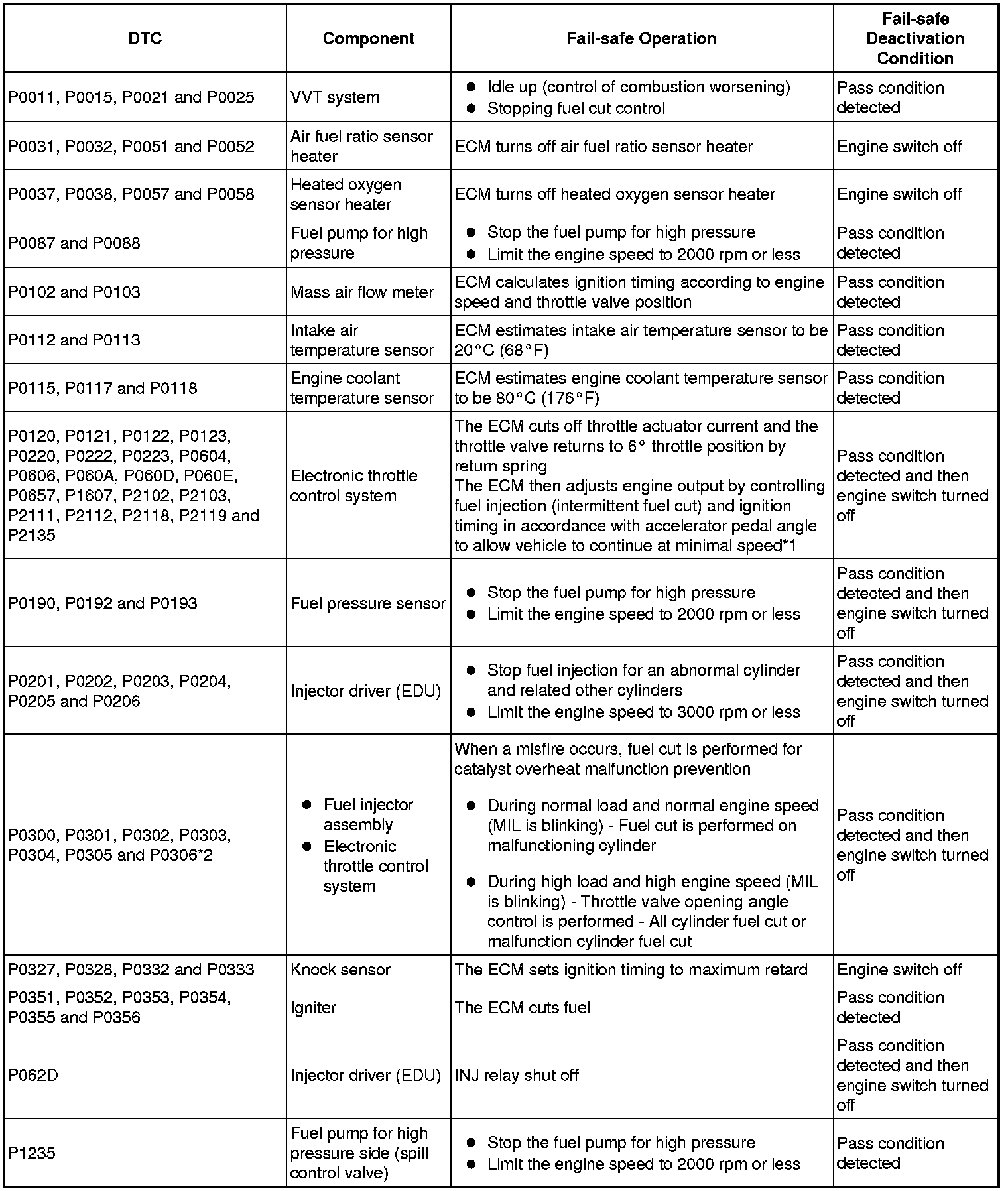 If any of the following DTCs are set, the ECM enters fail-safe mode to allow the vehicle to be driven temporarily.