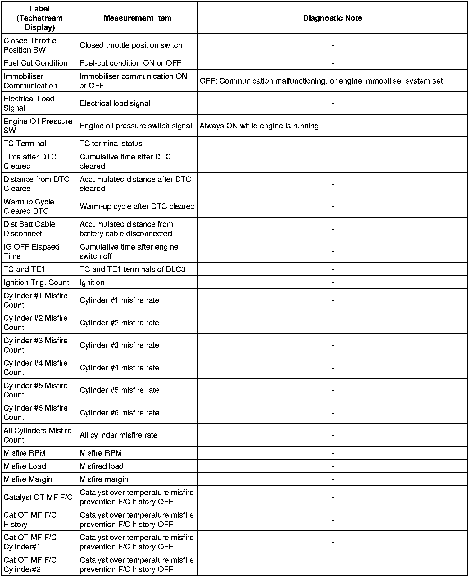 * The ECM records engine conditions in the from of freeze frame data every 0.5 seconds. Using Techstream, five separate sets of freeze frame data, including the data values at the time when the DTC was set, can be checked.