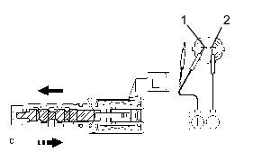 (b) Connect a battery's positive (+) lead to terminal 1 and negative (-) lead to terminal 2, and check the movement of the valve.