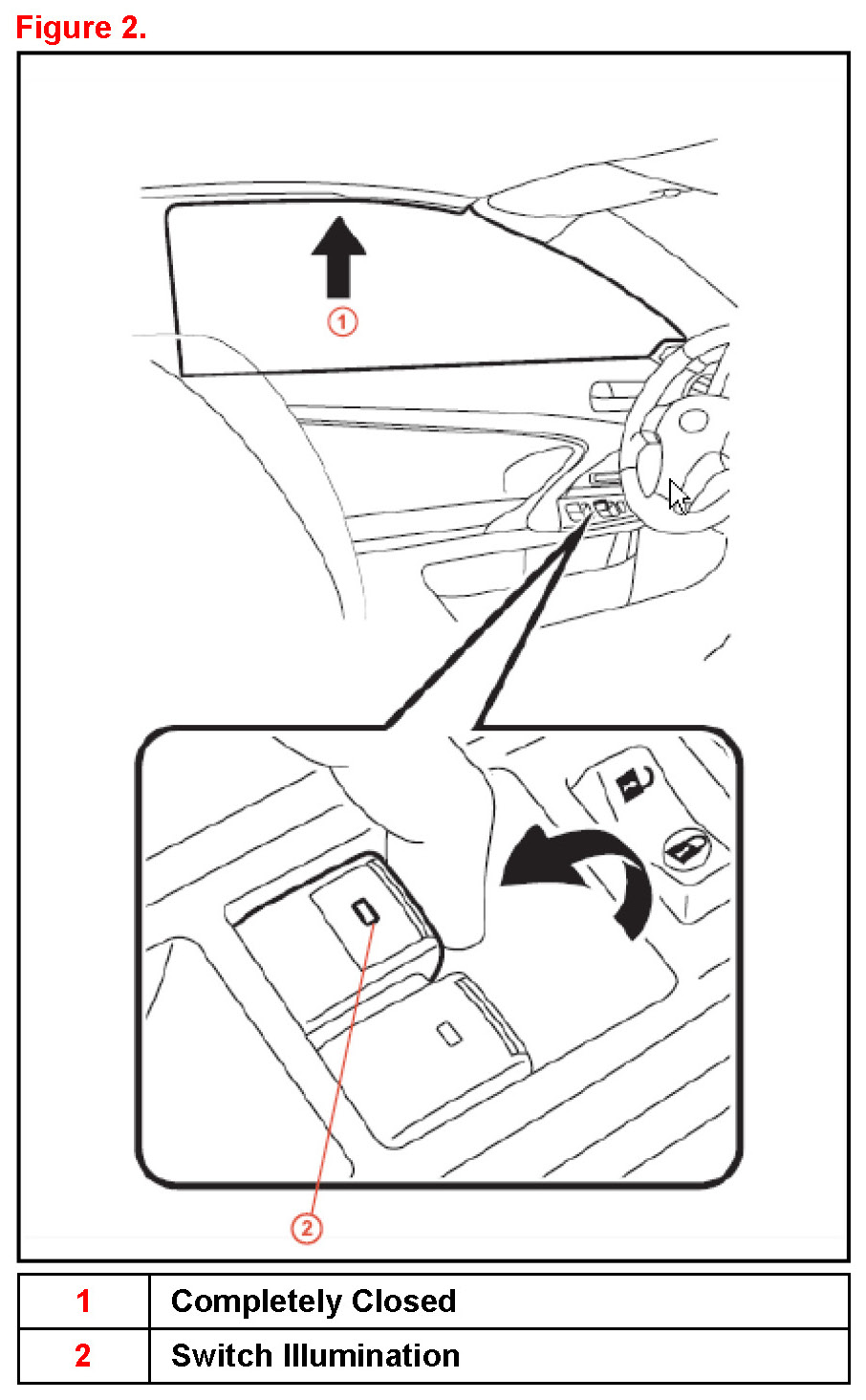 4. Pull "UP" the driver's door power window switch until the window closes, and hold it until the switch stops blinking and remains illuminated.
