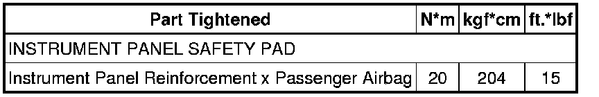 SPECIFICATIONS: INTERIOR PANELS / TRIM: TORQUE SPECIFICATIONS