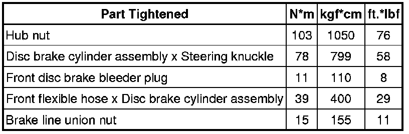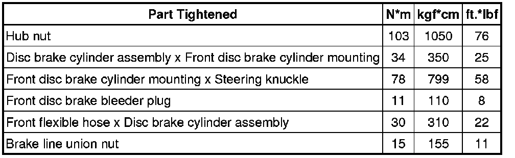 SPECIFICATIONS: BRAKE (FRONT): TORQUE SPECIFICATIONS
