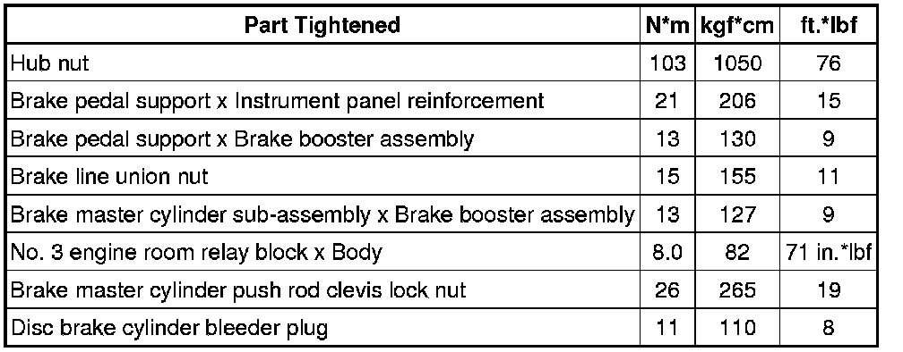SPECIFICATIONS: BRAKE SYSTEM (OTHER): TORQUE SPECIFICATIONS
