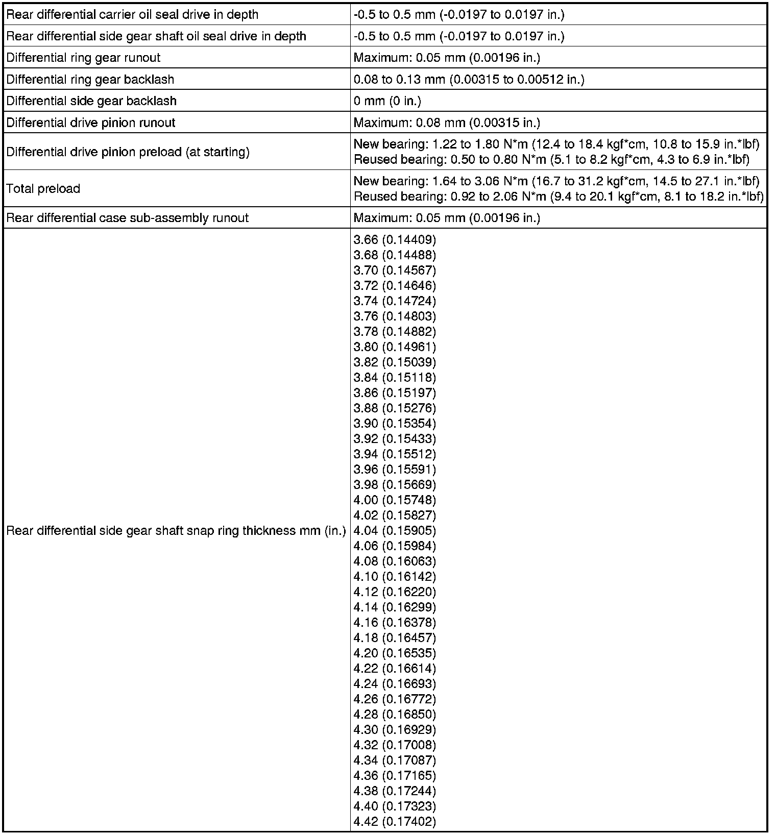SPECIFICATIONS: AXLE AND DIFFERENTIAL: SERVICE DATA