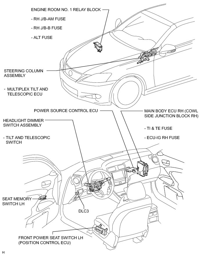 STEERING COLUMN: POWER TILT AND POWER TELESCOPIC STEERING COLUMN SYSTEM: PARTS LOCATION