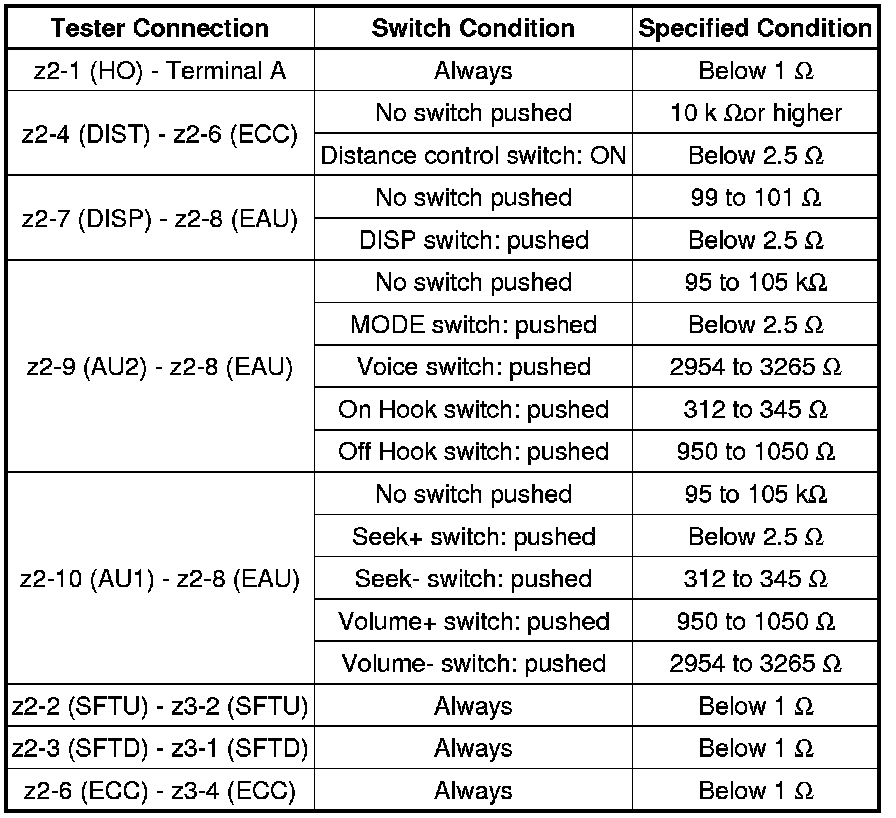 If the result is not as specified, replace the steering pad switch assembly.