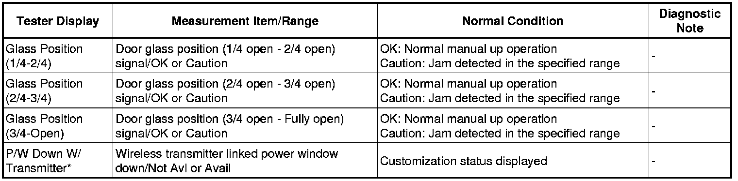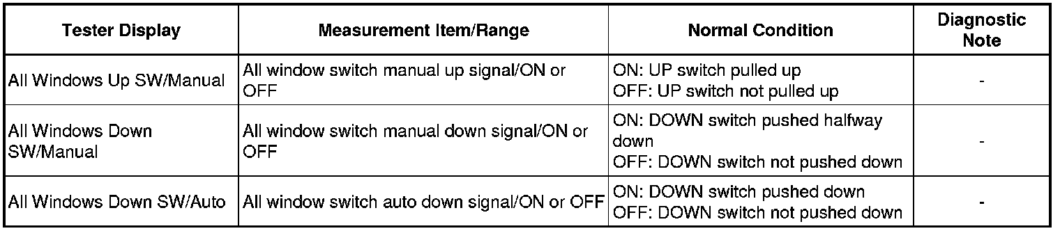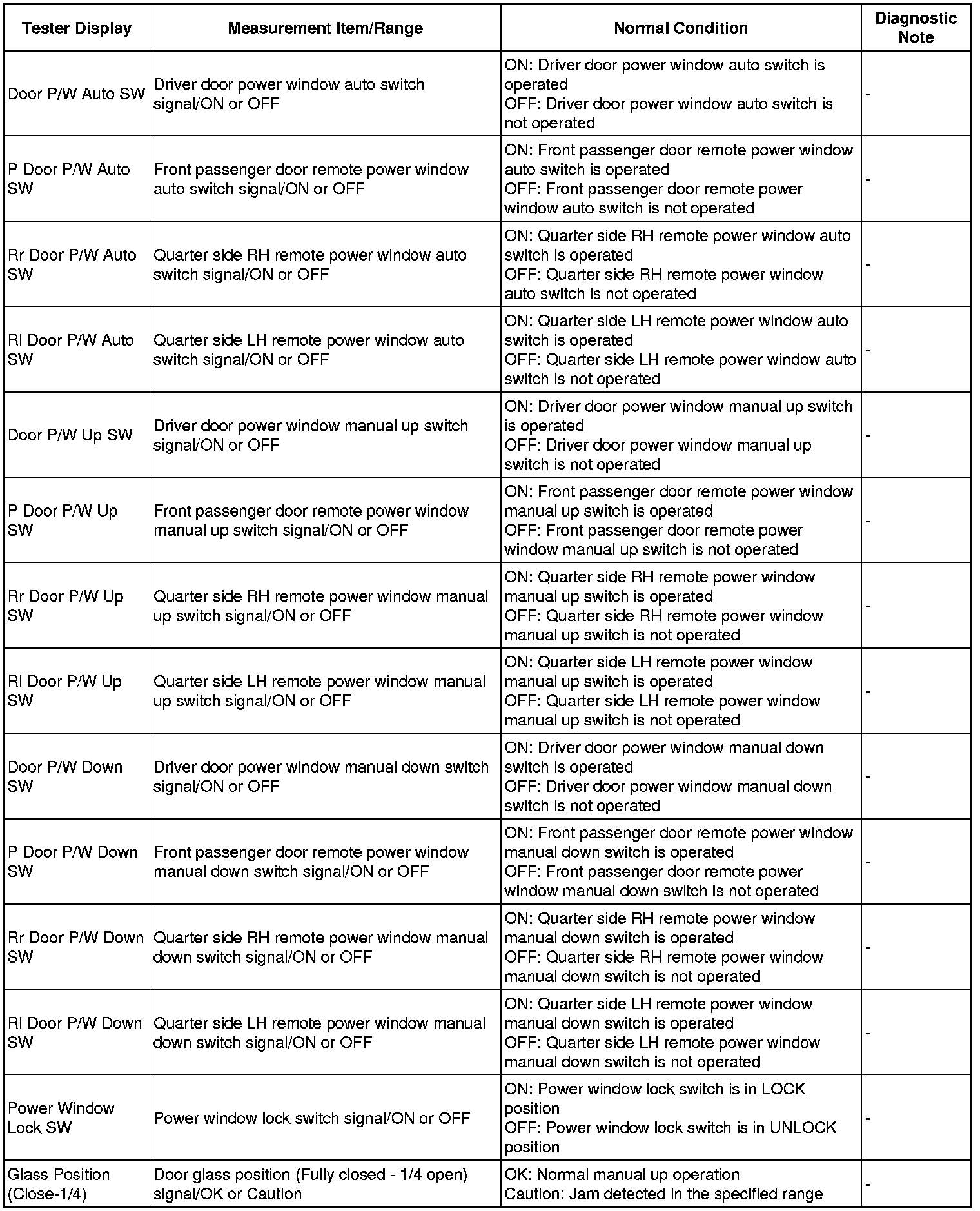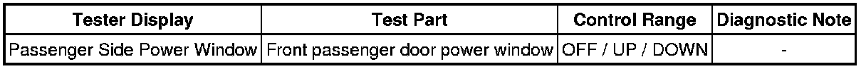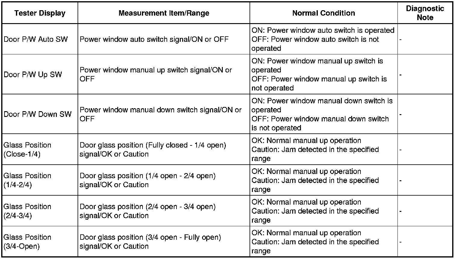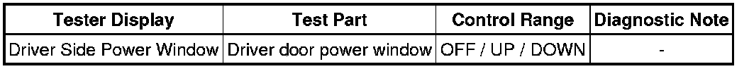 WINDOW / GLASS: POWER WINDOW CONTROL SYSTEM: DATA LIST / ACTIVE TEST