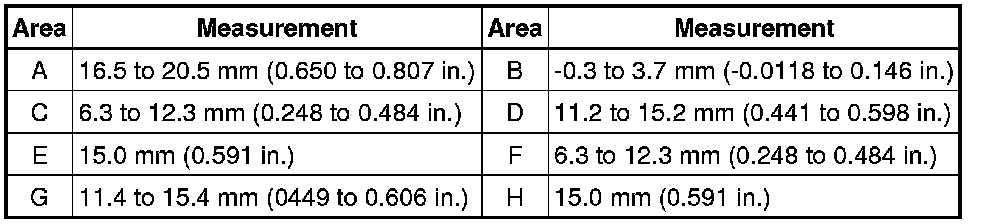 (e) Check that the clearance measurements of areas A through H are within each standard range.