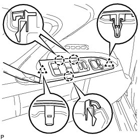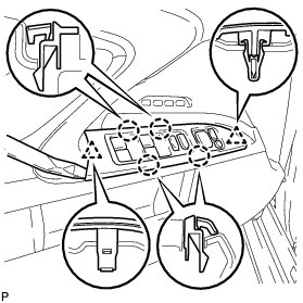 5. REMOVE POWER WINDOW REGULATOR MASTER SWITCH ASSEMBLY WITH FRONT DOOR ARMREST BASE PANEL