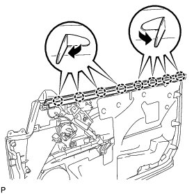 (a) Disengage the 8 claws and remove the front door inner glass weatherstrip from the front door panel as shown in the illustration.