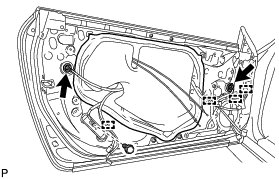 (b) Connect the power window regulator master switch assembly and move the front door glass sub-assembly so that the door glass bolts can be seen.