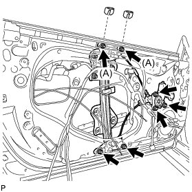 (a) Loosen the 2 nuts (A) and remove the 2 window regulator shims.