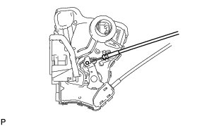(a) Connect the front door lock remote control cable and front door inside locking cable to the front inside handle.