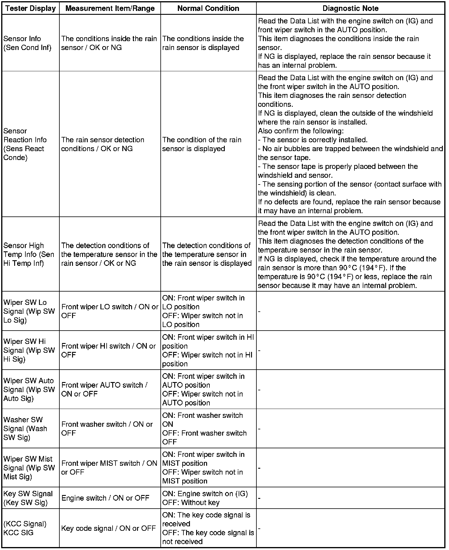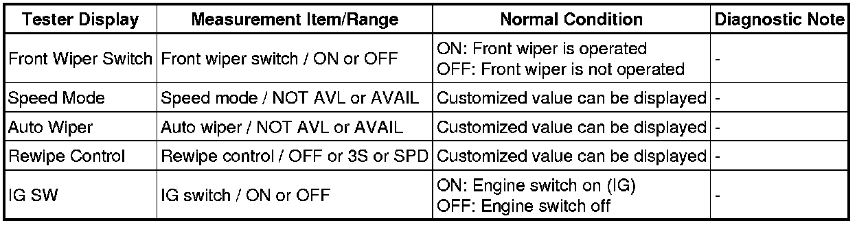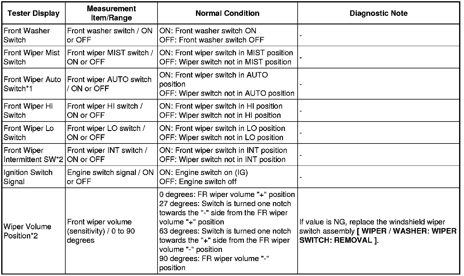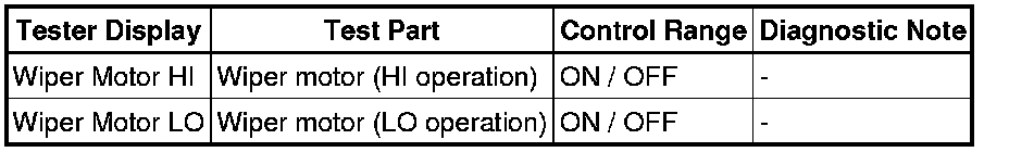 WIPER / WASHER: WIPER AND WASHER SYSTEM: DATA LIST / ACTIVE TEST