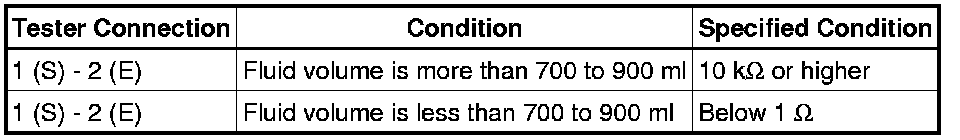 If the result is not as specified, replace the level warning switch assembly.