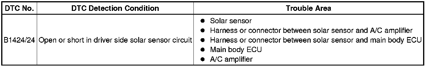 HEATING / AIR CONDITIONING: AIR CONDITIONING SYSTEM: B1424/24: Solar Sensor Circuit (Driver Side)