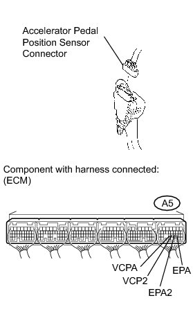 (d) Reconnect the accelerator pedal position sensor connector and ECM connector.