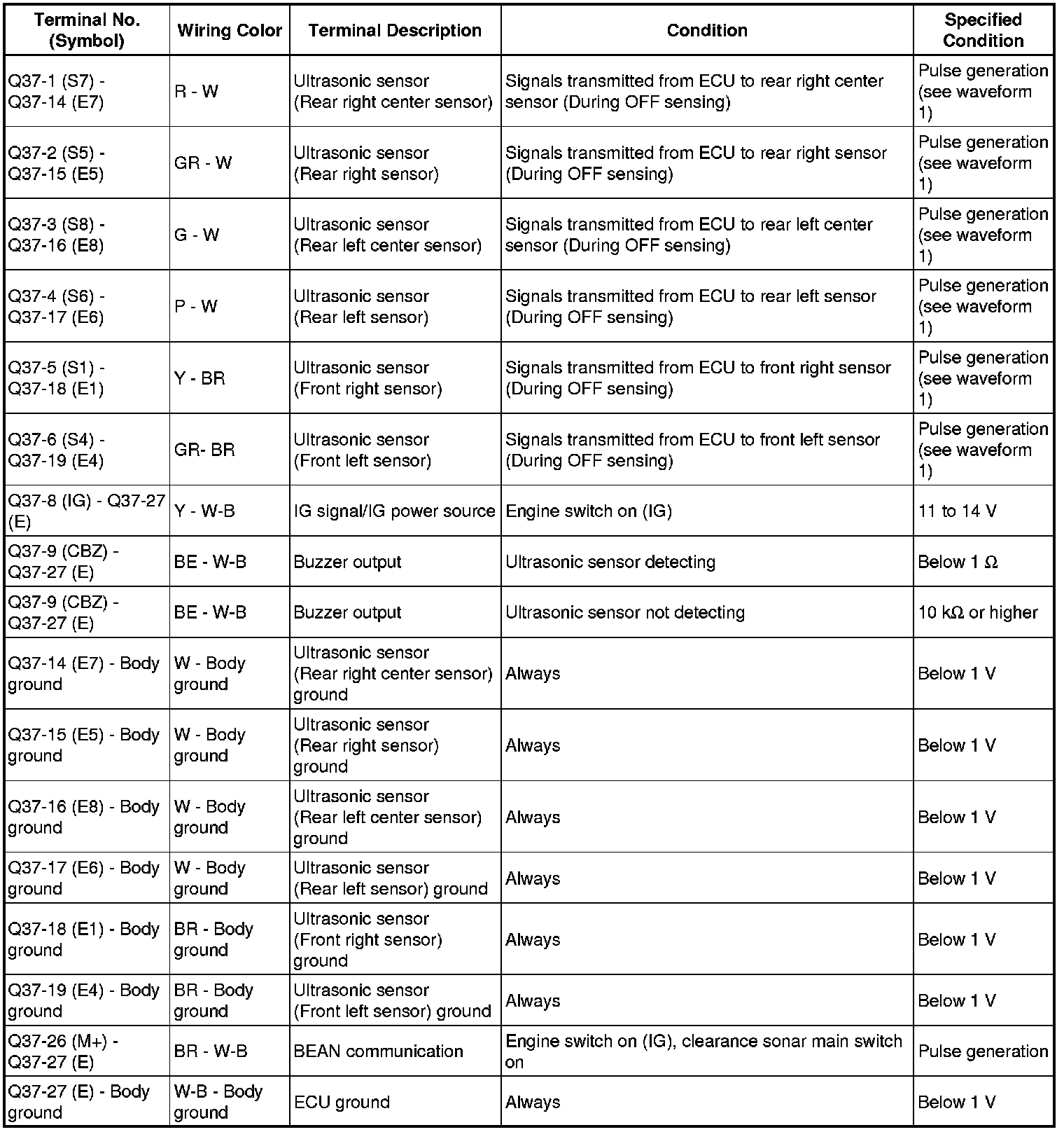 PARK ASSIST / MONITORING: INTUITIVE PARKING ASSIST SYSTEM: TERMINALS OF ECU