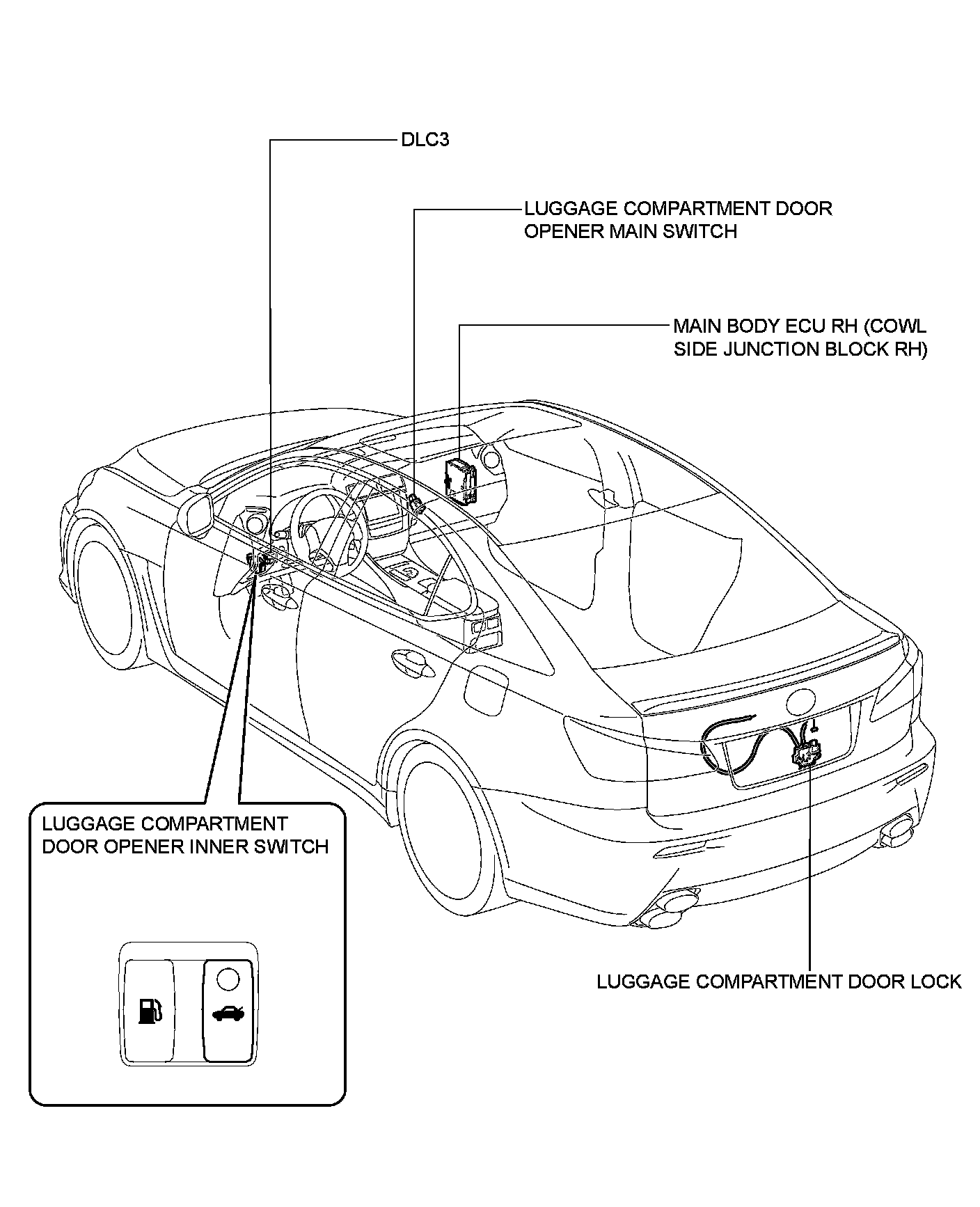 DOOR / HATCH: LUGGAGE COMPARTMENT DOOR OPENER SYSTEM: PARTS LOCATION