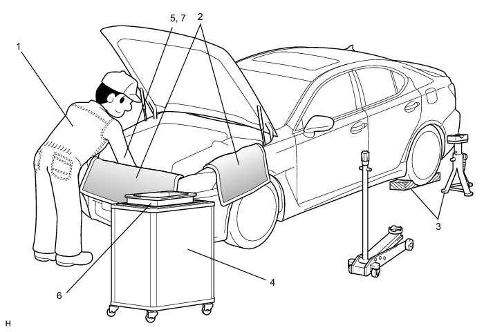 (b) JACKING UP AND SUPPORTING VEHICLE