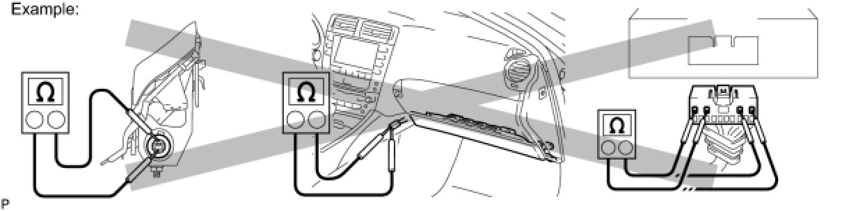 (6) When measuring the resistance between terminals of a wire connector, insert the tester probe carefully to prevent terminals from bending.