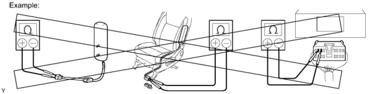 (1) Never measure the resistance of the rear seat outer belt assembly. This may cause the pretensioner of the rear seat outer belt assembly to activate, which could cause serious injury.