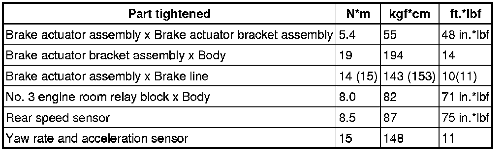 SPECIFICATIONS: BRAKE CONTROL / DYNAMIC CONTROL SYSTEMS: TORQUE SPECIFICATIONS( ): For use without union nut wrench