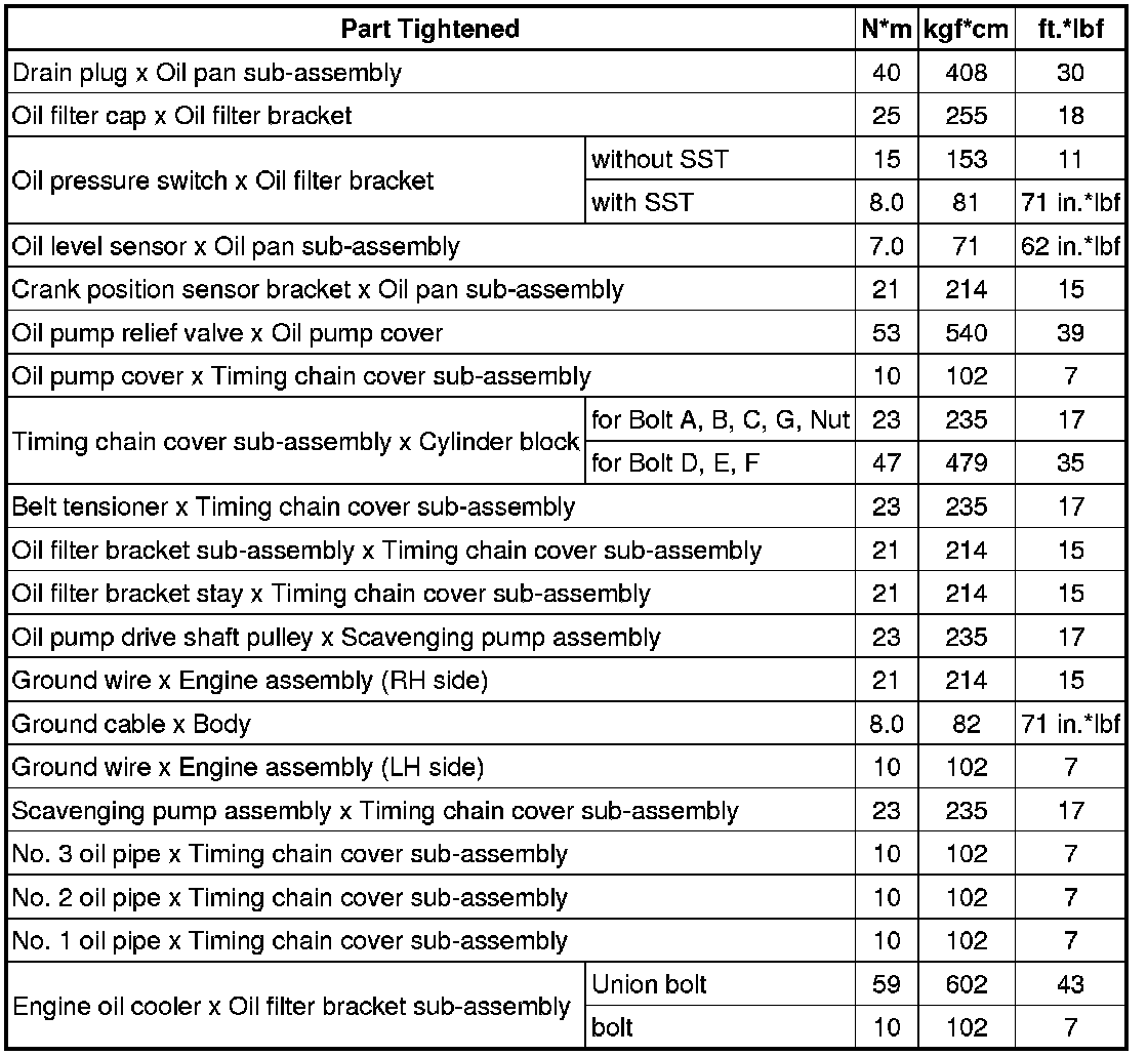 SPECIFICATIONS: 2UR-GSE LUBRICATION: TORQUE SPECIFICATIONS
