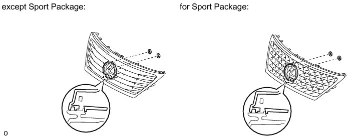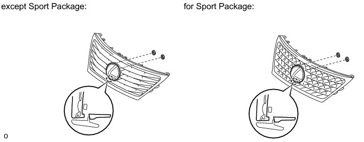 (b) Detach the claw and remove the radiator grille (or front panel) emblem.