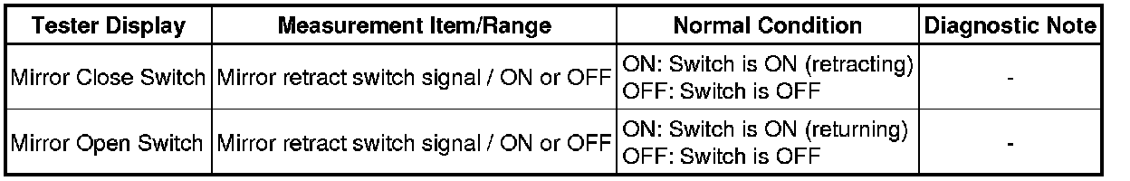 2. READ VALUE USING TECHSTREAM (MIRROR RETRACT SWITCH)