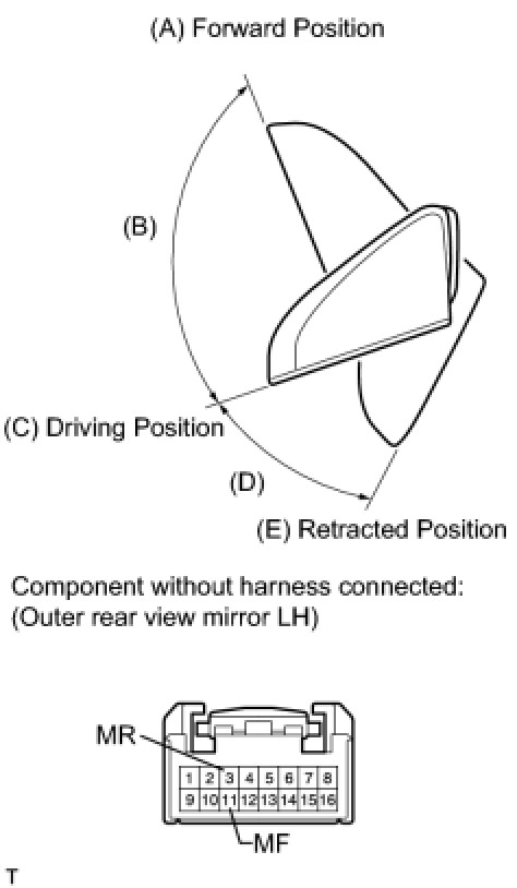 * Disconnect and reconnect the battery once between each mirror position check.