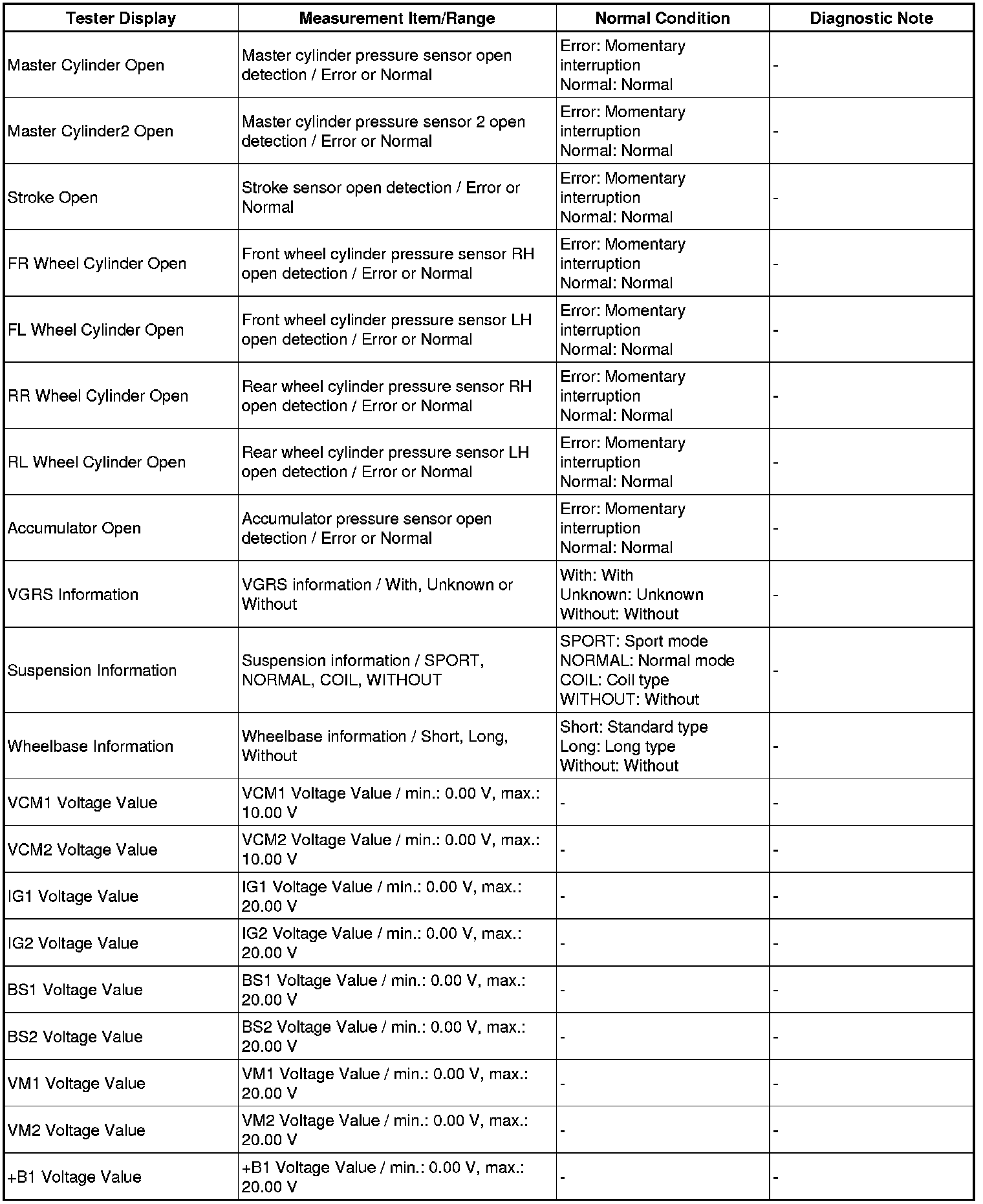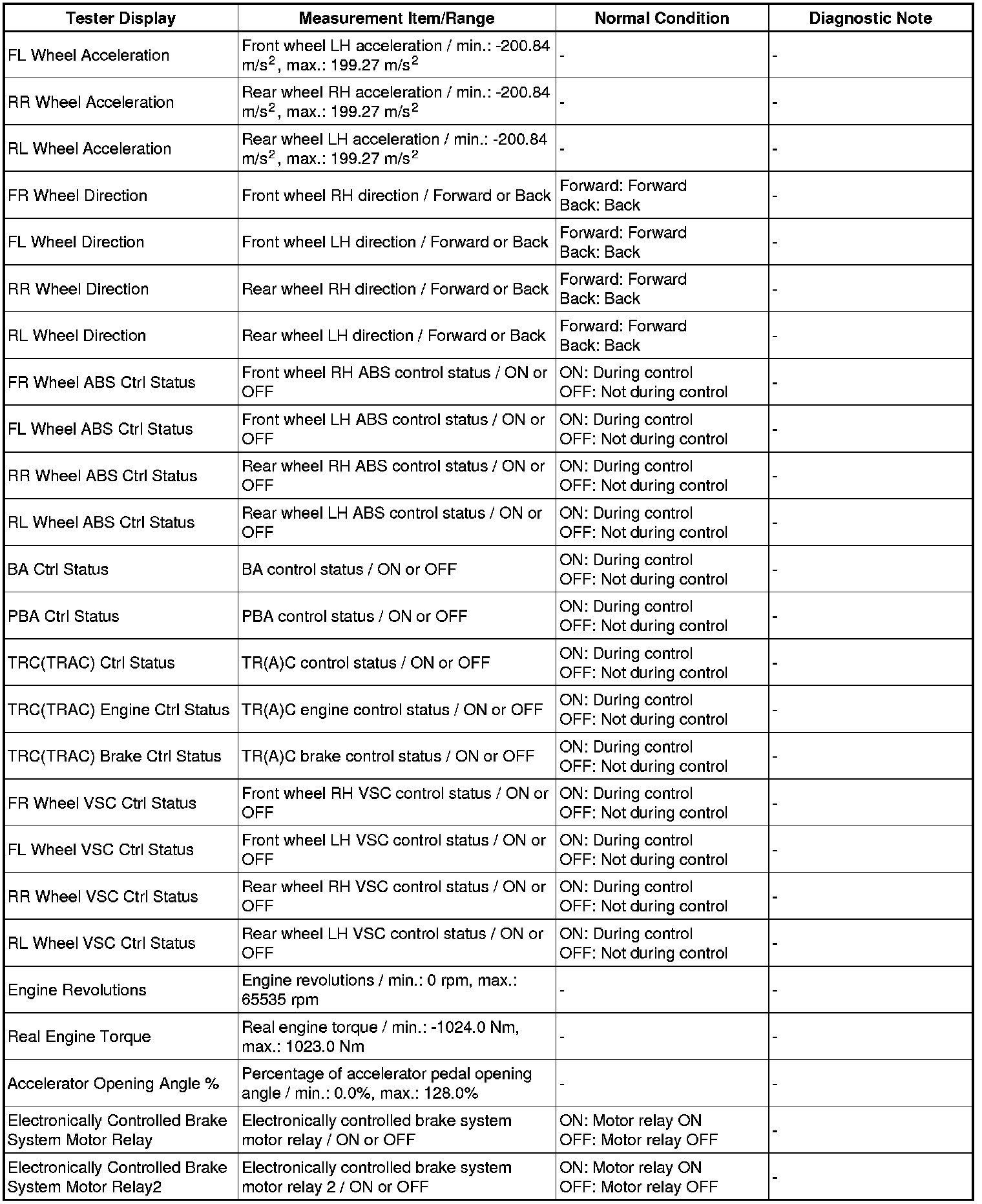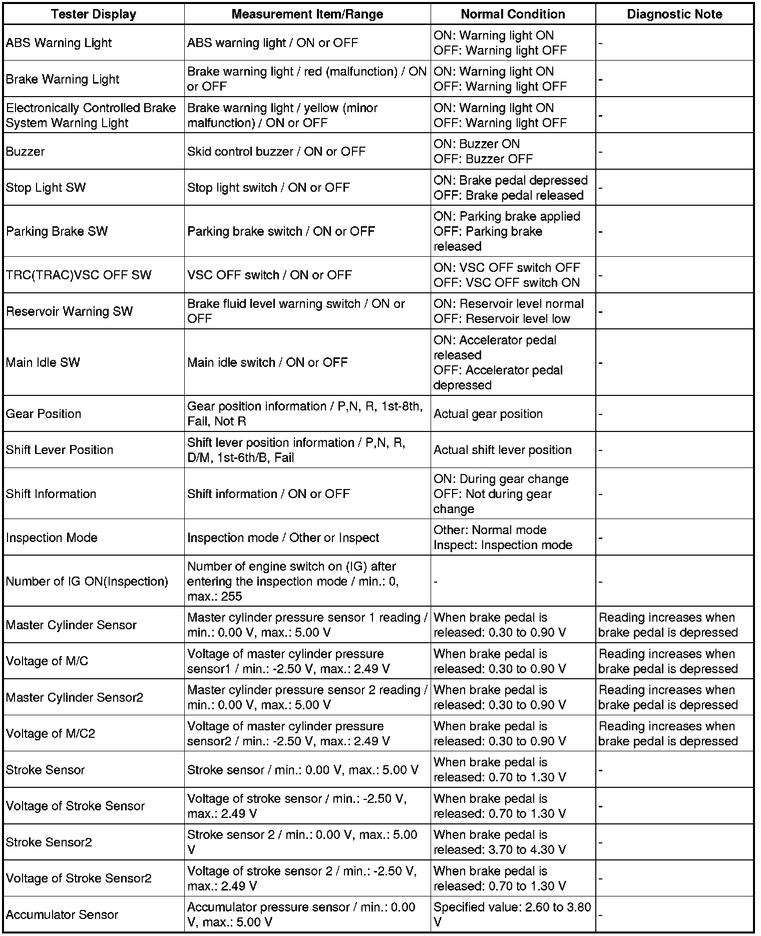 Using the Techstream to read the Data List allows the values or states of switches, sensor, actuators and other items to be read without removing any parts. This non-intrusive inspection can be very useful because intermittent conditions or signals may be discovered before parts or wiring is disturbed. Reading the Data List information early in troubleshooting is one way to save diagnostic time.