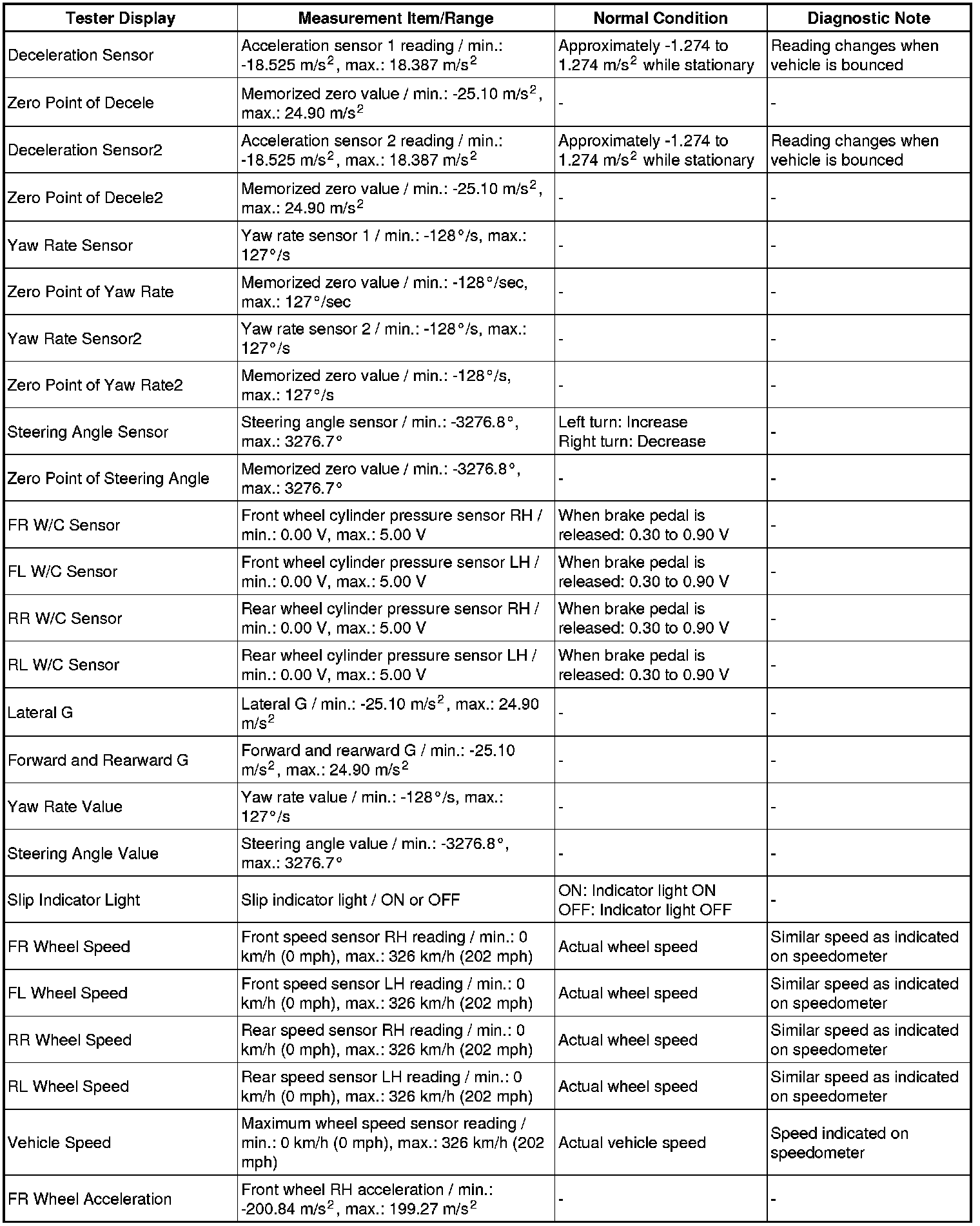 * The Active Tests of the ABS solenoid, ABS motor relay, ABS warning light and brake warning light / red (malfunction) are available when the vehicle is stopped.