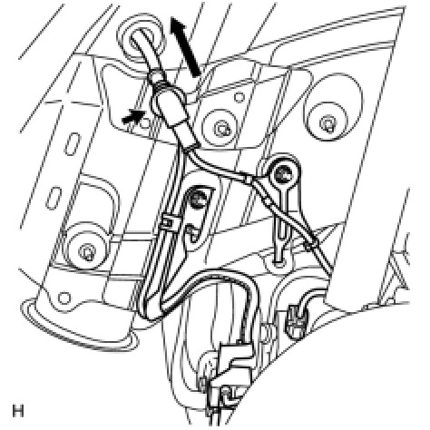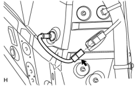 (f) Insert the connector and grommet to the inside of the vehicle through the hole in the wheel house.